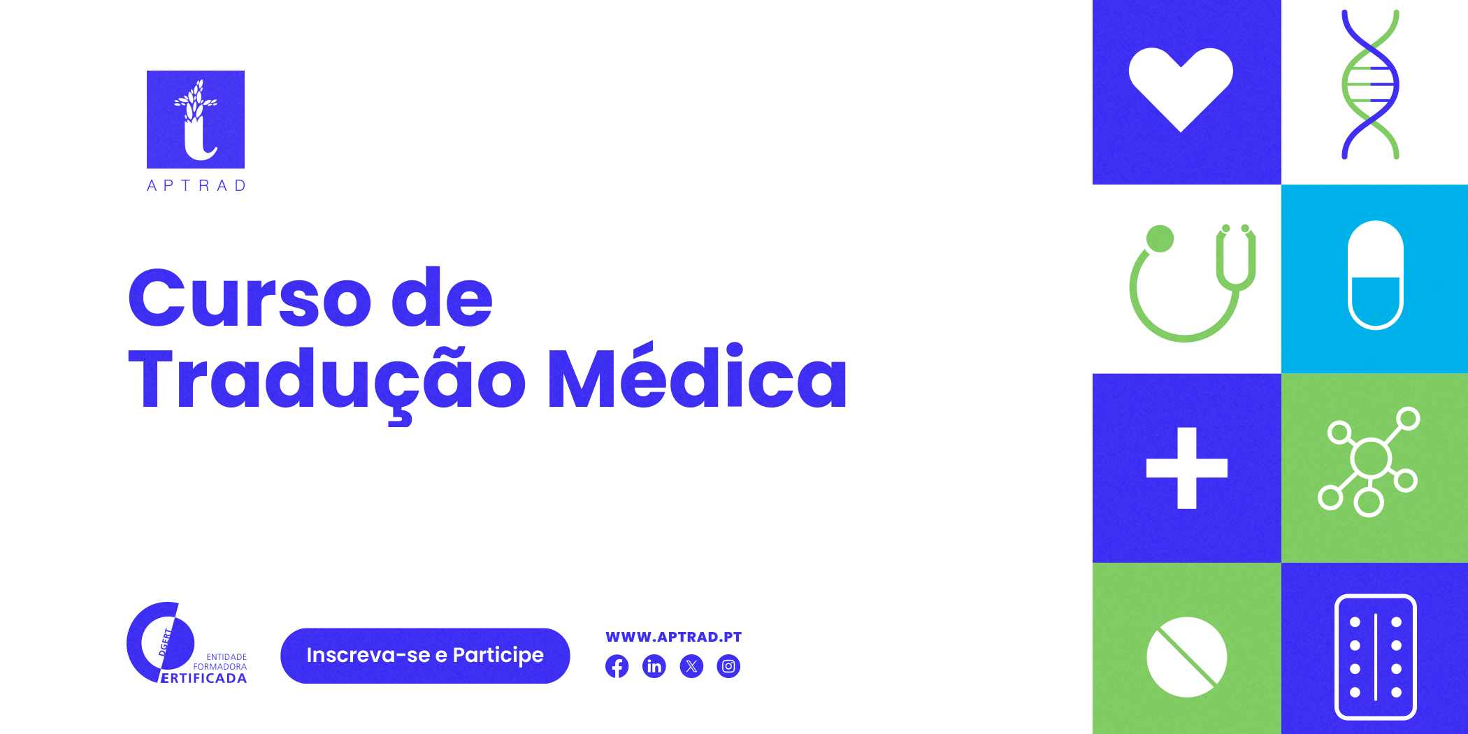 O curso “Curso de formação em tradução médica – da teoria à prática” combina numa única formação os conteúdos fundamentais e práticos anteriormente distribuídos pelos níveis I e II do mesmo curso. Destina-se a dotar os participantes de bases sólidas e competências aplicadas para traduzir documentos em diferentes áreas das ciências da vida – desde ensaios clínicos a materiais educativos.